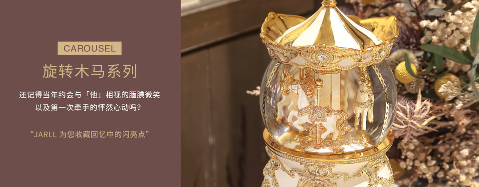 浪漫粉金 旋转木马(灯光) 水晶球音乐盒