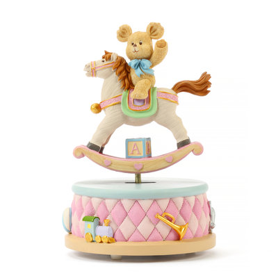 米白金珠寶風格旋轉木馬 水晶球音樂盒