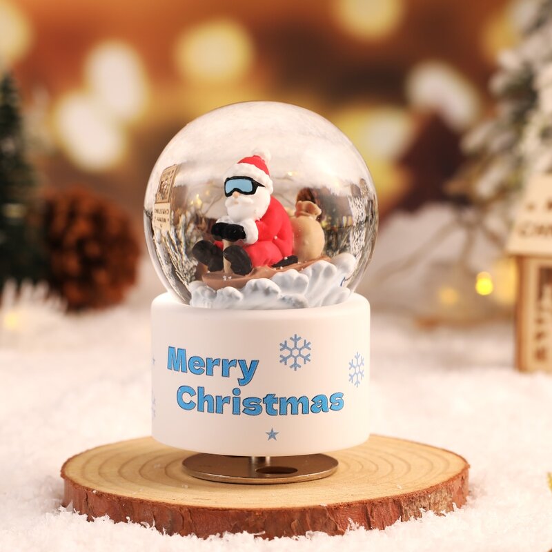 聖誕老人坐滑板沖浪 水晶球音樂盒